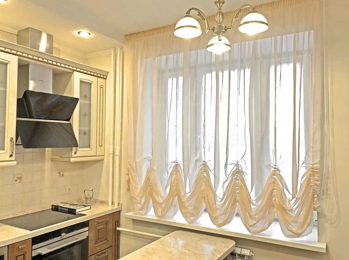 Полупрозрачное полотно не сможет защитить кухню от проникновения солнечных лучей и посторонних взглядов. Если ваша квартира располагается с солнечной стороны, на первом этаже дома или рядом с иными высотками, то дополнительно для затенения необходимо будет использовать плотные варианты либо жалюзи.