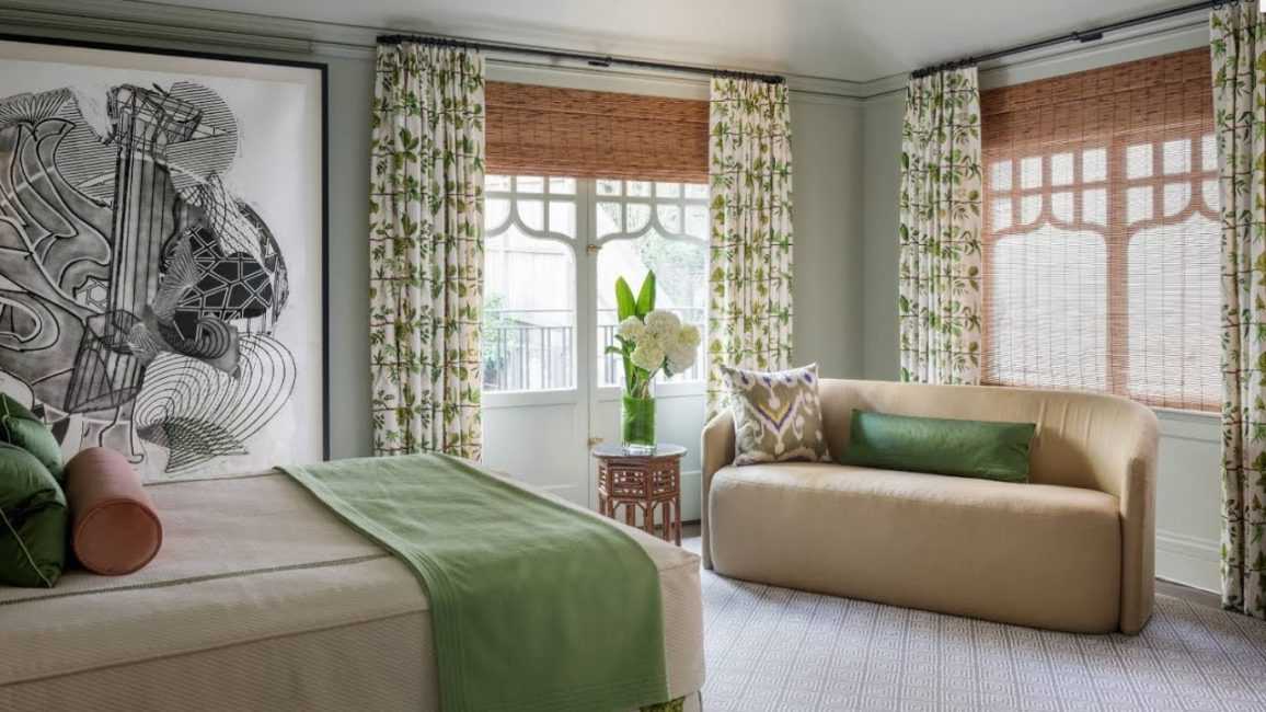 Умиротворяюще действует зеленый цвет. Он может создавать различный эффект для штор в зависимости от оттенка. Если в комнате преобладает классика, то лучше выбрать оливковый тон.