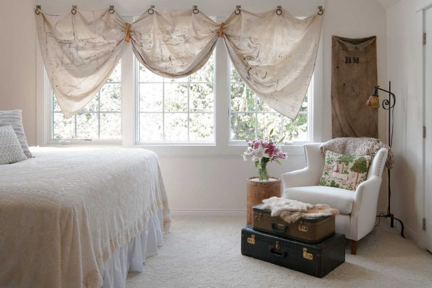 В свою очередь дизайн окна с простыми прямыми гардинами до пола может показаться скучным. Разбавить скуку поможет креативный подход.