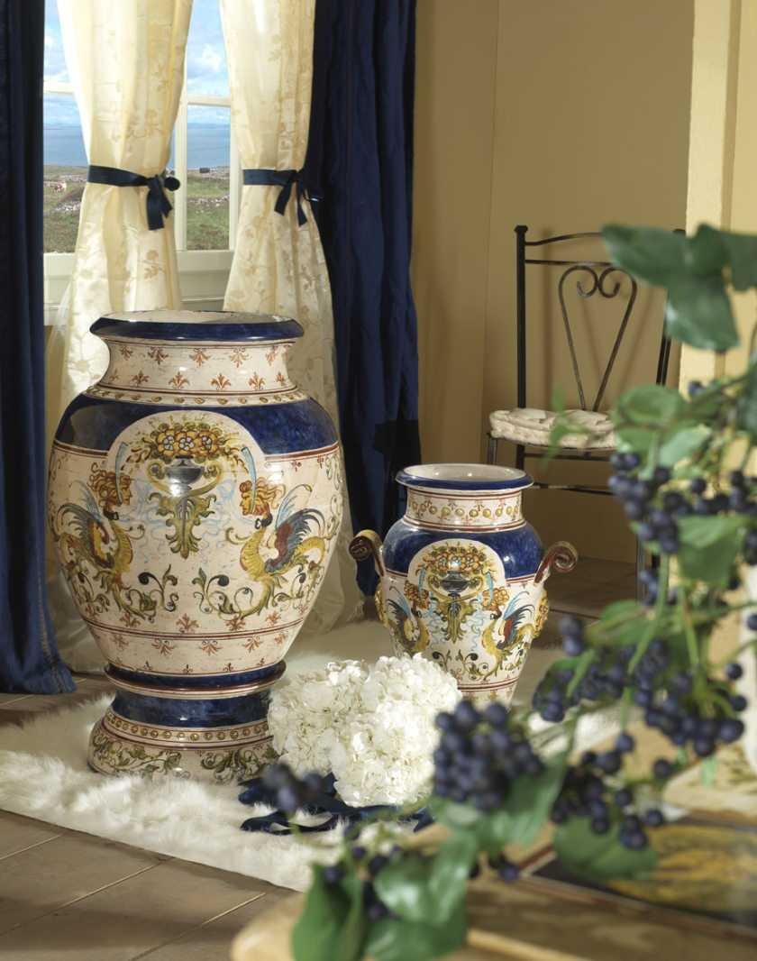 - иногда используется антикварная напольная ваза. В интерьере она отвечает за роскошь и монументальность. Лучше всего подходит для оформления комнат в стиле ампира, классики или модерна;