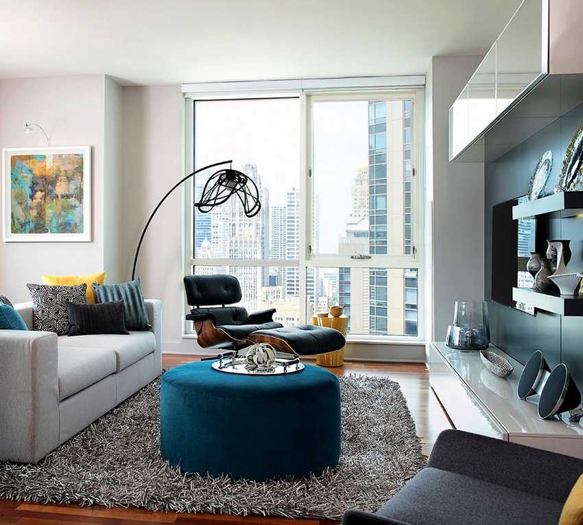 - Синий цвет успокаивает. Подходит для спальни и современной гостиной.