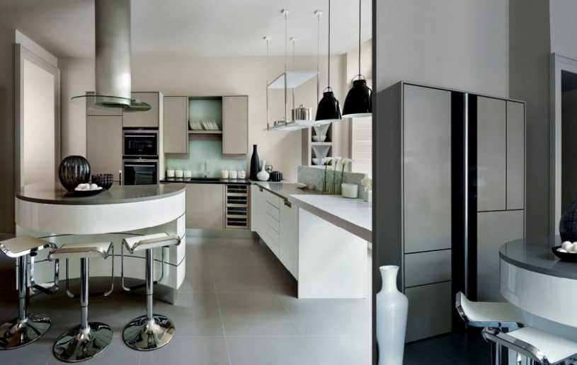 Обратите внимание, что с помощью простых манипуляций с формами можно зрительно расширить зону готовки: подберите бар в виде дуги или в других нестандартных формах – и ваша кухня не только расширится, но и будет выглядеть современной
