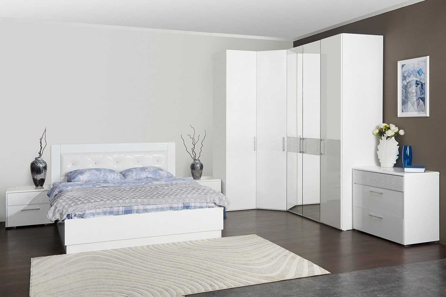 - угловые белые глянцевые шкафы в спальне, оснащенные зеркалами, визуально расширят пространство.