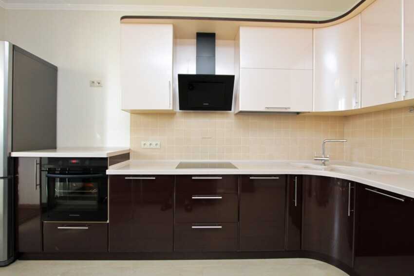 Встроенные кухни различаются по набору составляющих, их расположению и внешнему оформлению кухонного гарнитура.