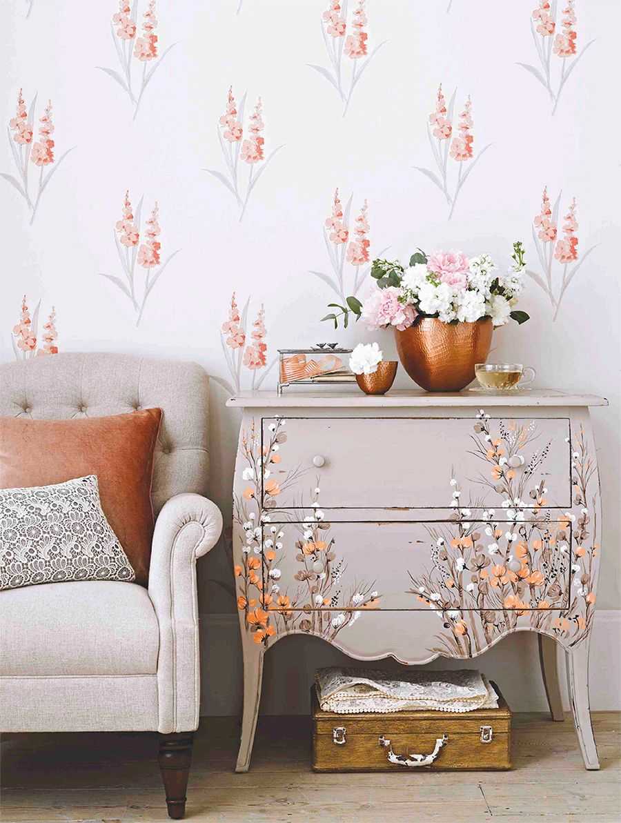 Обои с мелкими и крупными цветами в интерьере