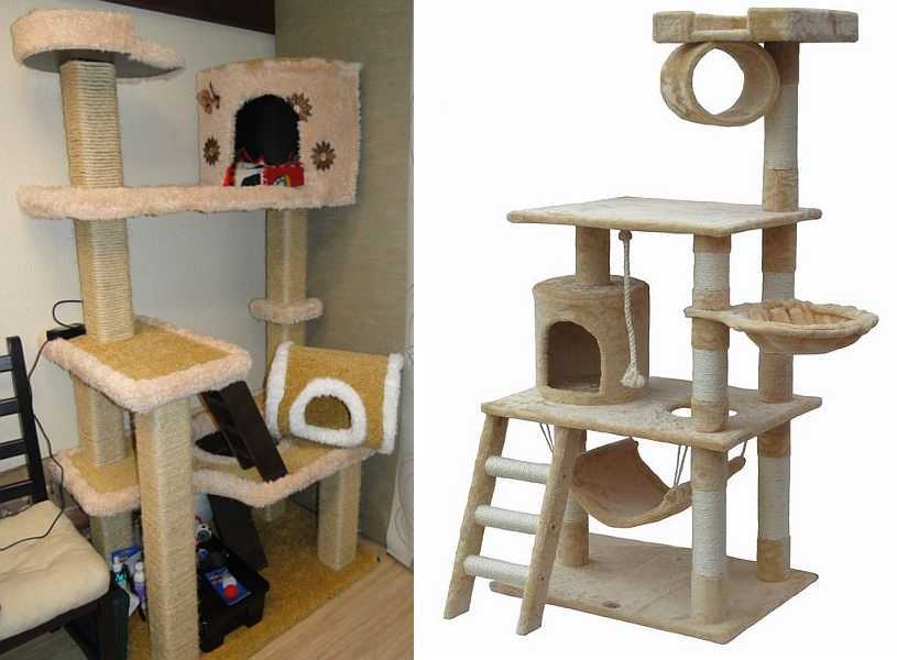Для кошки же лучше сделать двухуровневую конструкцию, где верхний уровень поможет высматривать врага, а нижний мать только что выведенного потомства использует для засады, и в случае приближения опасности будет нападать на будущего обидчика.