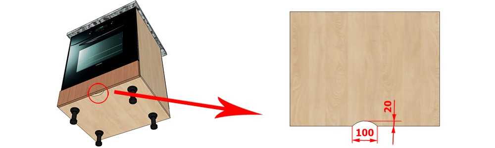 Для того чтобы фронт можно было открывать без ручки, расположенной на нем, в нижнем горизонте, проектируется небольшой вырез посредине.