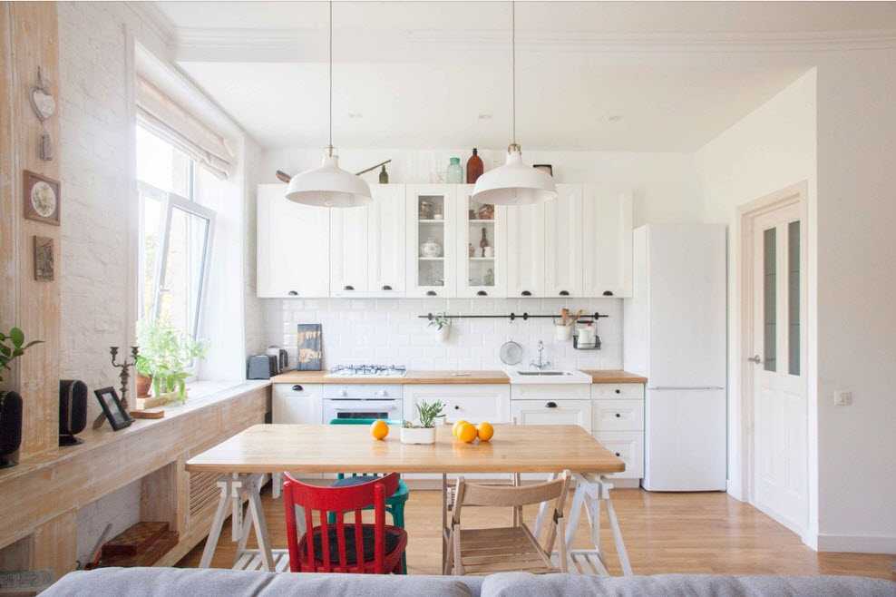 Кухня — это место, куда в течение дня домочадцы наведываются чаще всего, и именно по этой причине важно, чтобы все на ней было расположено предельно удобно и практично. Холодильник постоянно используется — то открывается, то закрывается, а потому должен располагаться так, чтобы никому не мешать