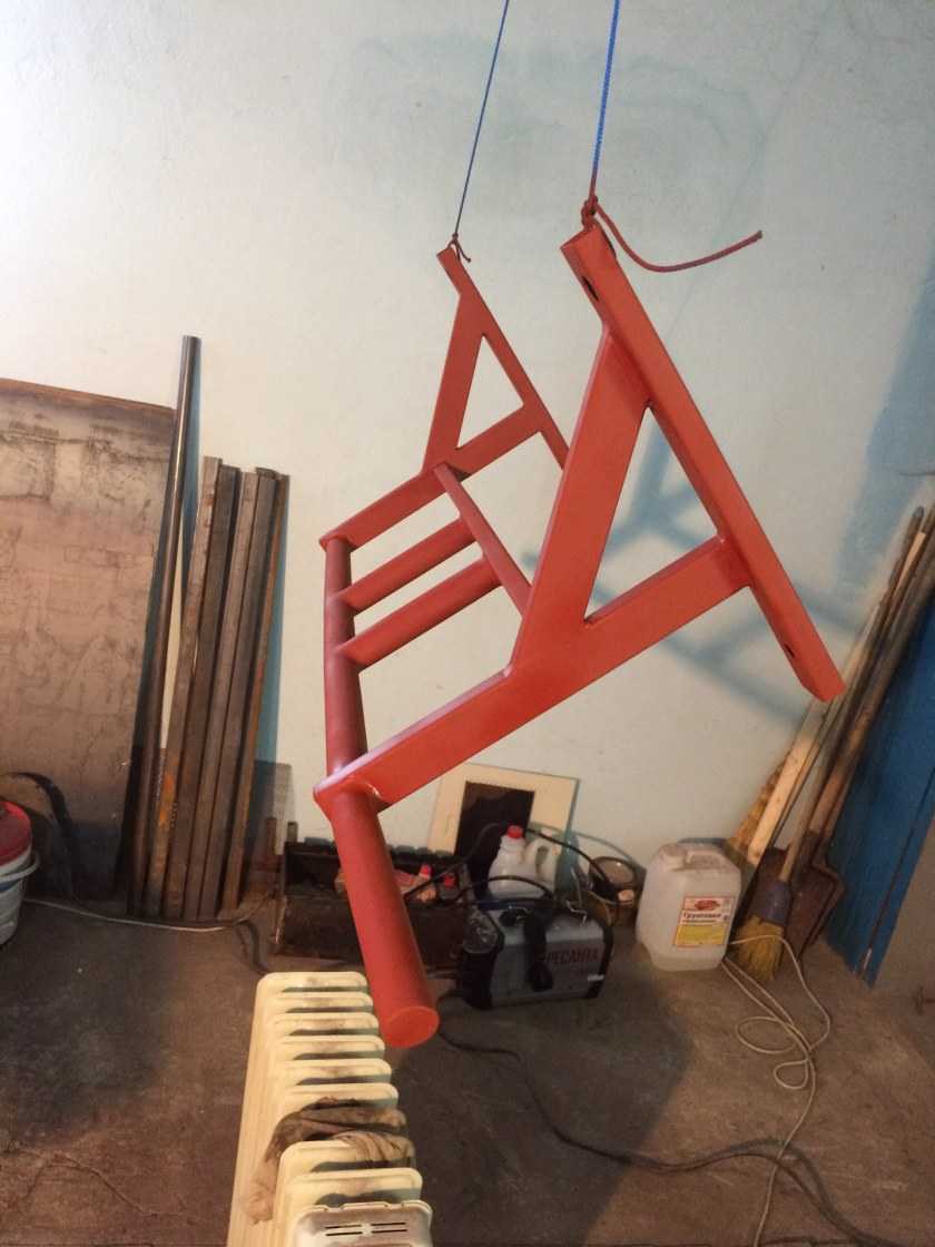 Здесь конструкция сварена из профильной трубы диаметром 30 мм, на соединении А-образных опор добавлены косынки, брусья снабжены подкосами.