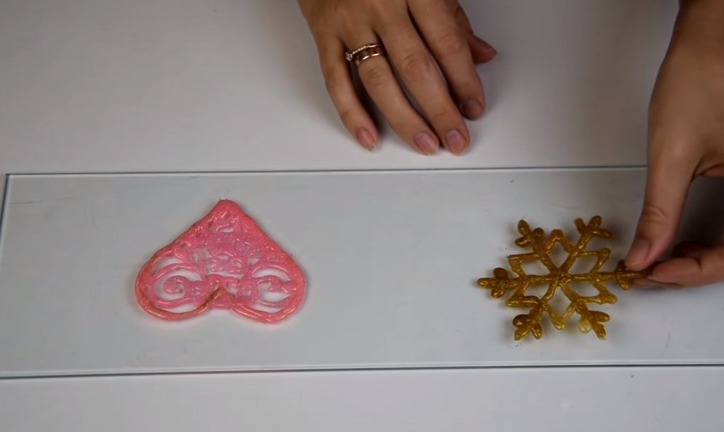 | Выбирается шаблон, по котором будет изготавливаться будущий декоративный элемент. Его форма и размер могут быть самыми разнообразными. Чаще всего выбор делается в пользу снежинок, сердечек и других плоских изделий. Сверху на шаблон укладывается стекло | |