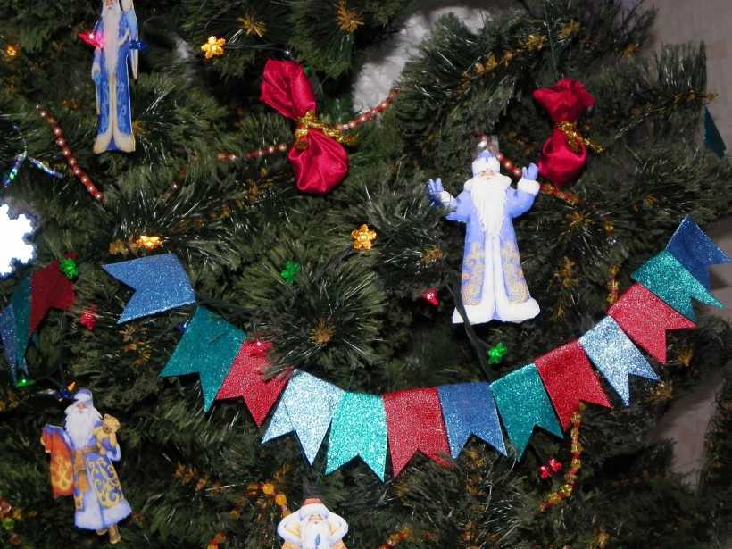 Например, с созданием самой простой красочной гирлянды справится даже трёхлетний малыш. Для этого понадобится лишь порезать на небольшие ленточки цветную бумагу и склеить их в виде колечек.