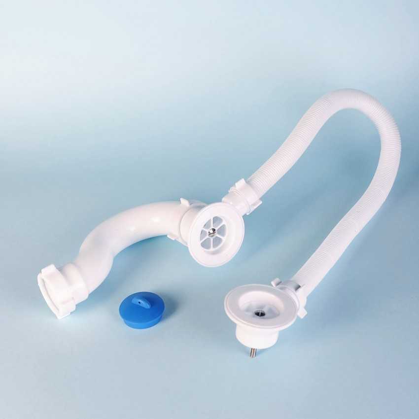 В части сифона с переливом нужно помнить о том, что чтобы соединить трубы перелива и приемный элемент сантехнического оборудования, необходимо вставить гофрированную трубу, которая была предварительно собрана.