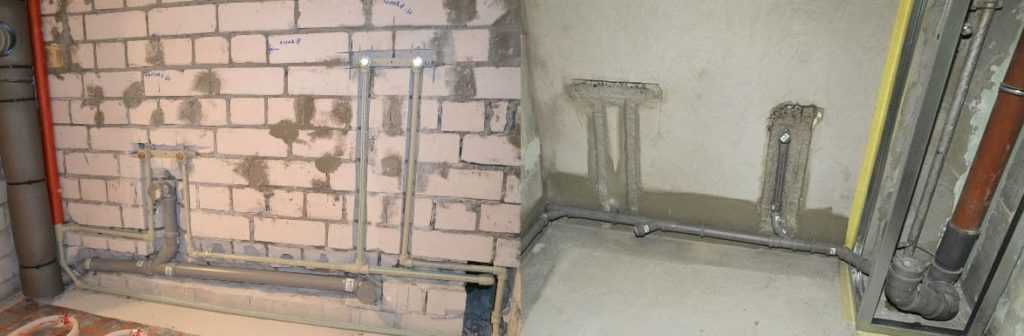 встречаются трубы, замурованные в пол, стены, частично утопленные в перекрытия