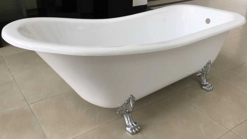 Изделия из чугуна обладают особо прочной структурой. Они не портятся от ударов и температурных контрастов. У качественных чугунных ванн эмалевый слой плотно прилегает к резервуару и не оставляет пор. Эмаль сохраняет цвет в течение длительного времени. Покрытие справляется с воздействием сильных чистящих средств, но абразивов все же лучше избегать. На первое место в перечне недостатков следует поставить большой вес изделий. Ванны создают серьезную нагрузку на напольное покрытие. Внутреннее строение материала мешает в создании необычных форм. Прямоугольник и овал — немногочисленные традиционные варианты. В отличие от акриловых, в чугунных емкостях вода остывает быстрее: буквально за 10—15 минут, хотя в этом смысле они лучше стальных. Помимо прочего, эмалированные покрытия теряют целостность от ударов.