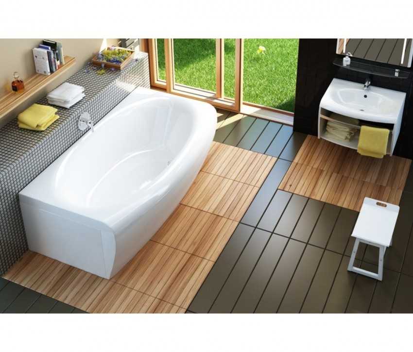Акриловым, а также их модификациям квариловым ваннам присуще большое разнообразие форм. Помимо всех геометрических фигур, оно представлено особой геометрией бортов и дна. Популярностью пользуются изделия в виде блюдец, ракушек, открытых капсул. Производители делают на внутренней поверхности отверстия для гидро- и аэромассажа: получается интересный дизайн. Размерная шкала акриловых ванн включает симметричные и асимметричные модификации. Среди асимметричных есть обычные прямоугольные и сложные форменные изделия. У разных производителей они составляют 150×100 см, 160×75, 160×90, 160×100, 160×105, 160×125, 170×100, 175×110, 180×130 см. У марки Ravak — это 140×105 см, 150×75, 150×100, 150×105, 160×75, 160×105, 170×110 и 185×105 см. Производитель Kolo изготавливает асимметричные модели с параметрами 140×100 см, 150×100, 160×80, 160×100, 170×105 см.
