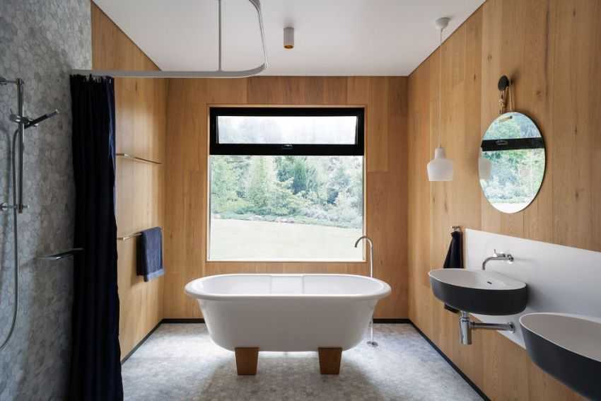 Панели с имитацией древесной текстуры придают большего уюта и природности дизайну ванной