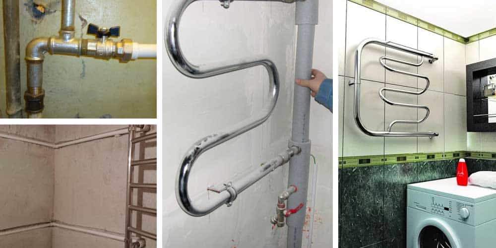 Для установки полотенцесушителя не годятся трубопроводы, спрятанные под навесным потолком, под напольным покрытием. При скрытой прокладке труб создаются труднодоступные петли, в которых накапливается воздух, задерживается вода.