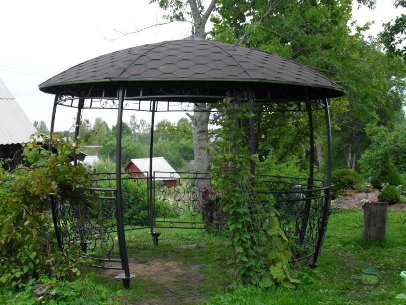 - Железные. Установка железной беседки требует фундамента и умелых рук строителя.