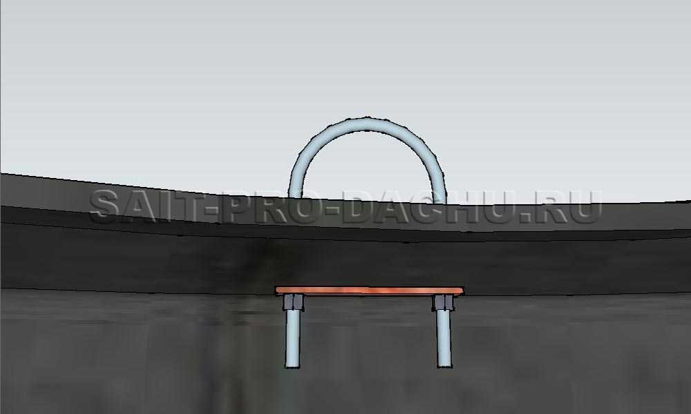 - Для опоры собирают две боковые конструкции в форме буквы «А». Устанавливают их на место, приваривают поперечную планку.