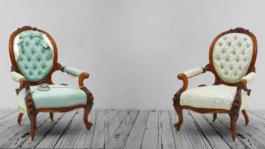Другое дело материал обивки. Вот, действительно, что нужно для перетяжки кресла, так это обивка. Проблема заключается еще и в том, что обычно реставрируют не весь комплект мебели, а только его часть – отдельно кресло или диван.