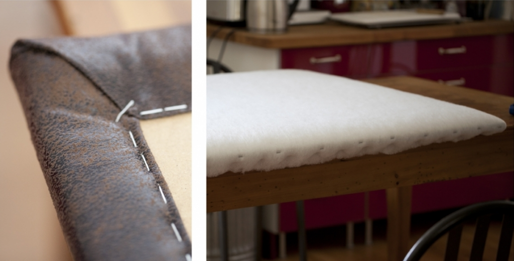 После снятия старой обивки и испорченного поролона необходимо прикрепить новый при помощи маленьких гвоздей. С его помощью можно придать мебели желаемый объем. После при помощи степлера крепится обивочный материал.