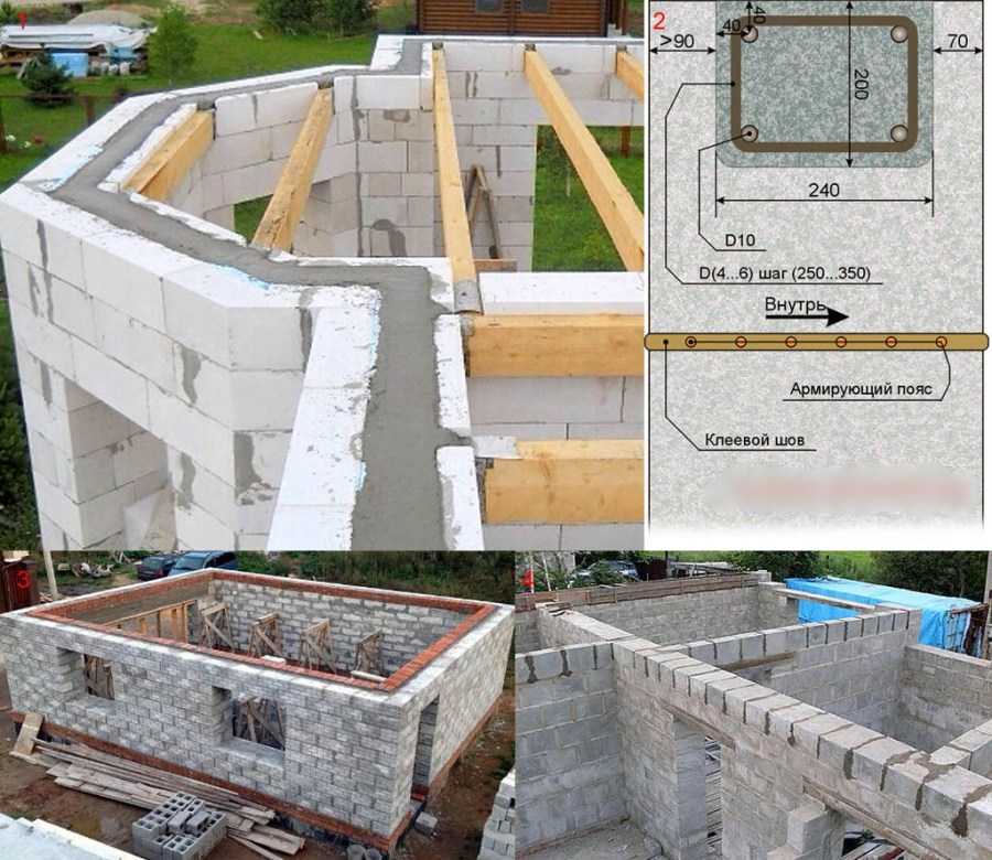 Значительный градиент давления под балками и плитами перекрытий требует поясов, которые будут равномерно распределять нагрузку. Это обусловлено специфической особенностью структуры пеноблоков — наличие пузырьков воздуха снижает прочность материала.