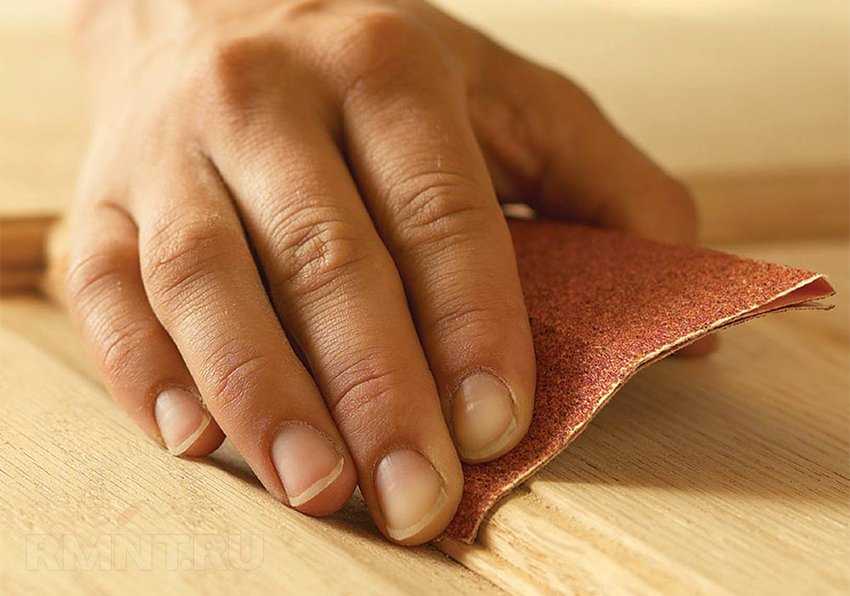 Делать это нужно осторожно, чтобы не повредить верхнее защитное покрытие (лак). Подойдет наждачка с минимальной зернистостью