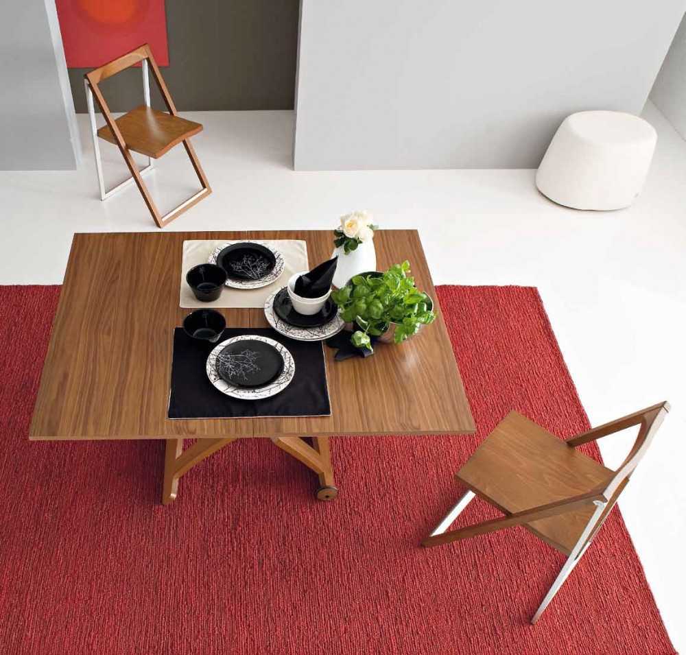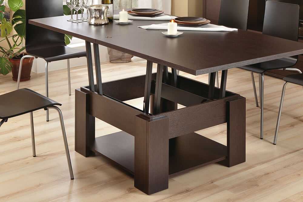 Любой такой столик, за счёт своей трансформации, сможет заменить вам несколько предметов мебели, что, соответственно, экономит место.