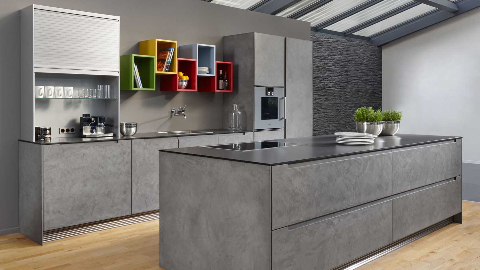 Мебель устанавливают в линейном порядке, буквой «П» или «Г», также встречаются двухрядные гарнитуры, где шкафчики стоят параллельно, вдоль двух стен. Главные цели, которыми руководствуются немцы, заказывая новую кухню, — это комфорт, простота в эксплуатации и уборке, максимальная функциональность.