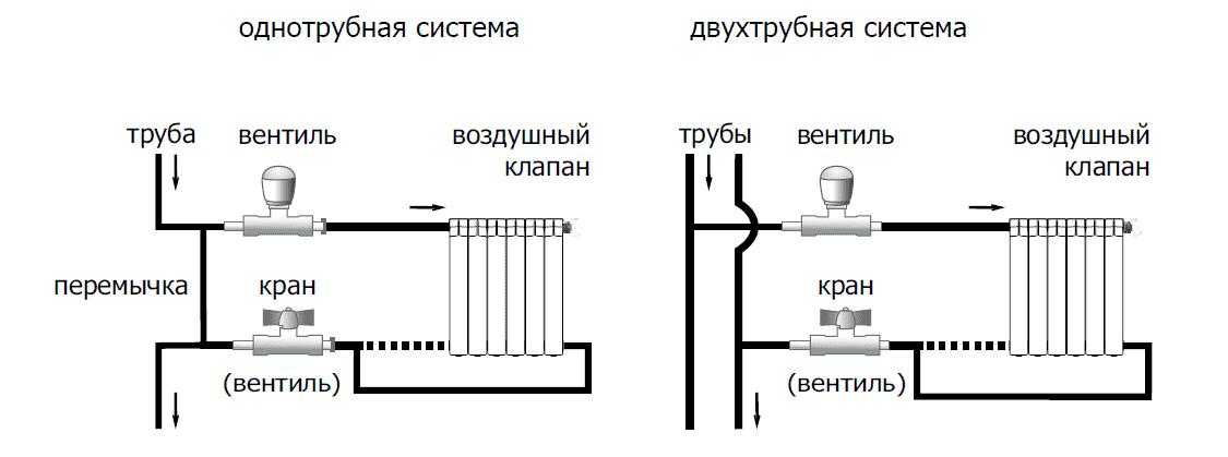 Схема однотрубной и двухтрубной системы отопления